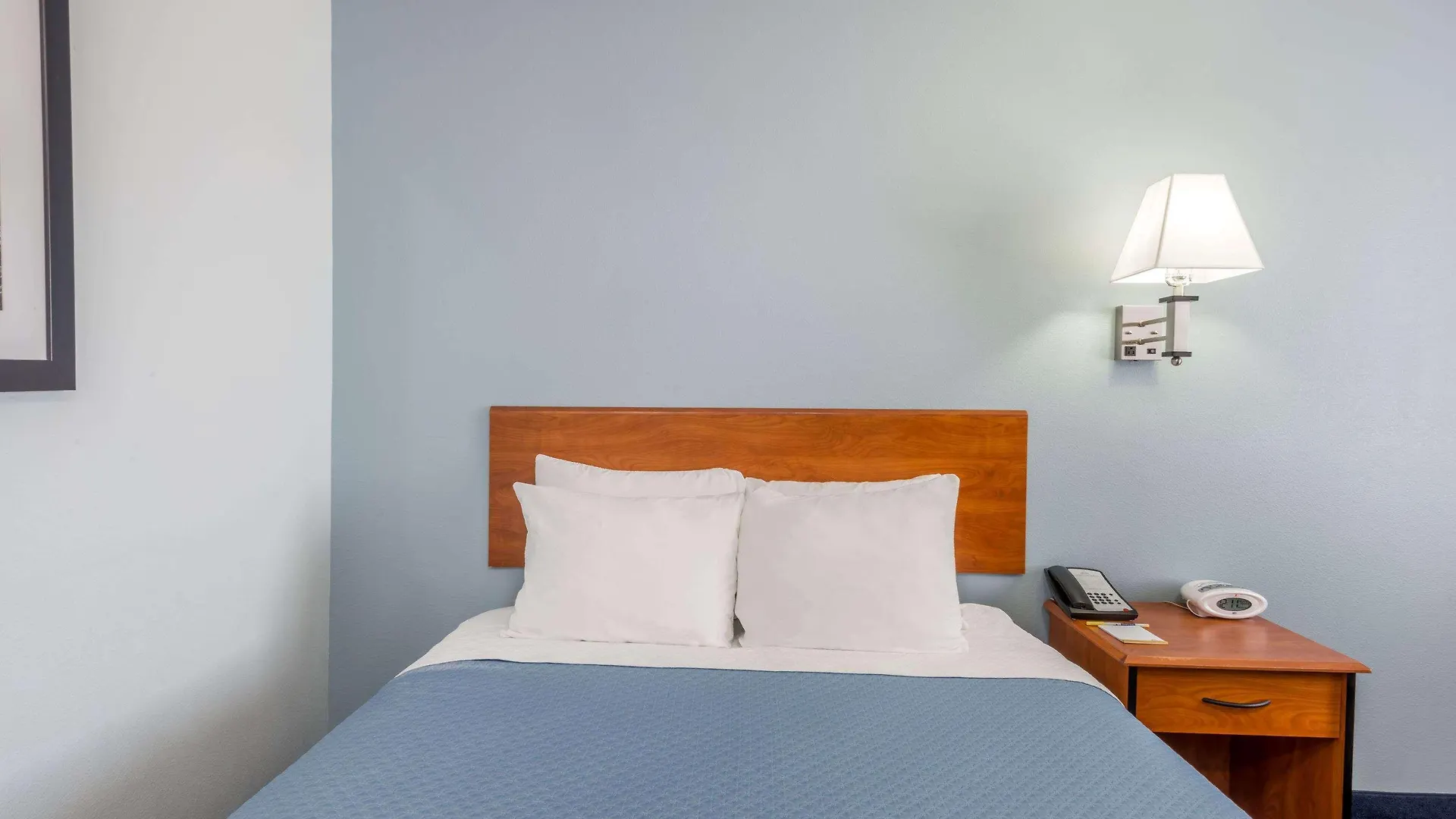 Rooms at Super 8 By Wyndham Las Vegas feature a simple decor. In addition, bathrooms include a bathtub and a separate toilet.